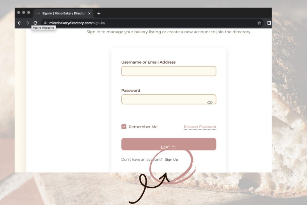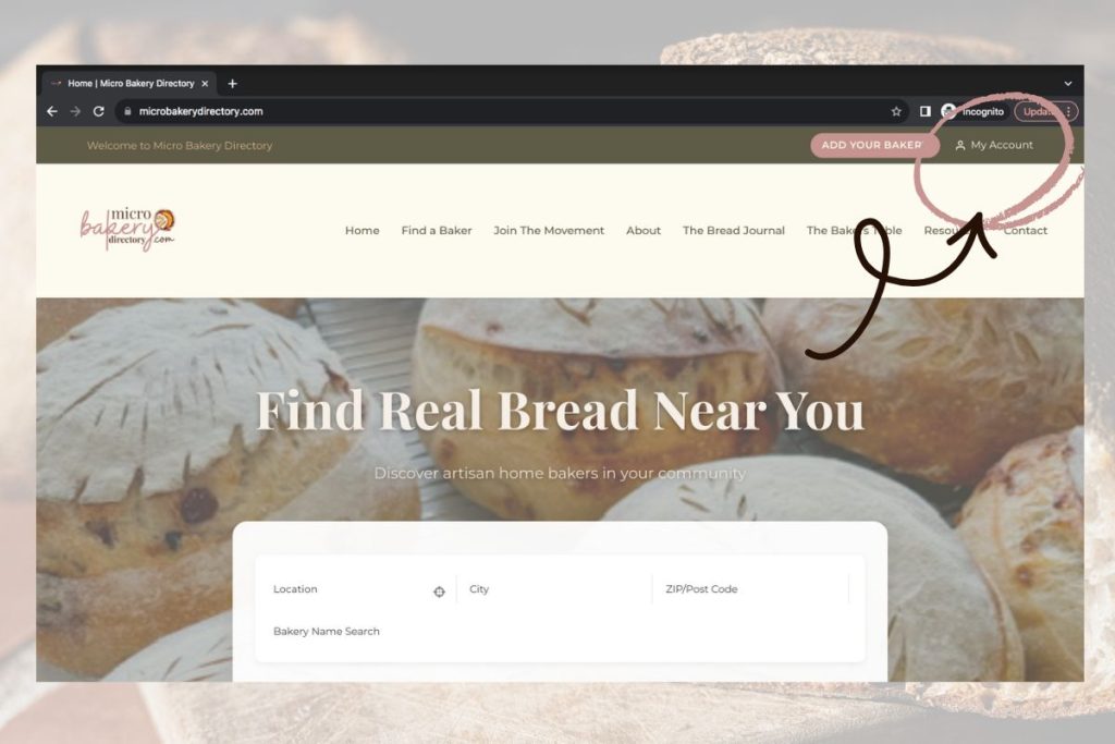Go to www.MicroBakeryDirectory.com → Click MY ACCOUNT.