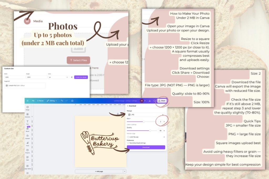 If needed, resize in Canva to 1200×1200 JPG at 80–90% quality.